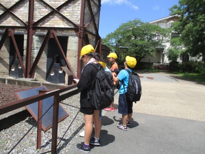 2023年6月18日 12時31分史跡巡りでは、韮山反射炉、江川邸、蛭ヶ島公園、城池親水公園、、韮山城址の5カ所を班ごとにまわりました。実物を見たり、説明を読んだりしながら一生懸命学ぶ姿が見られました。