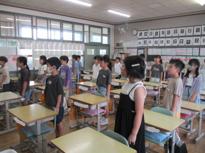 始業式ではたくさんの人が良い姿勢で話を聞くことができていました。